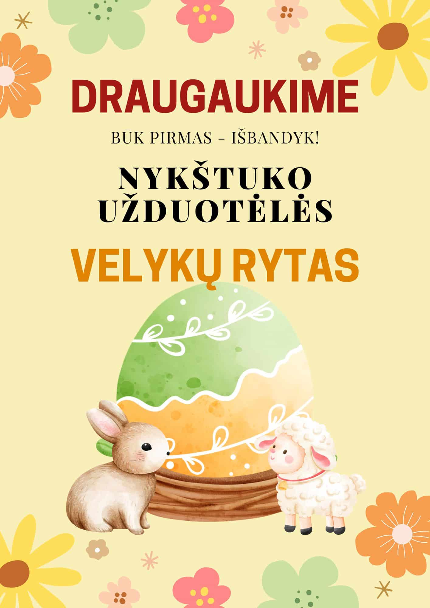 - ZUIKIO LOBIO PAIEŠKA – vaikų mylimiausias ir abejingų nepaliekantis žaidimas Velykų rytą! Vaikai gauna Zuikio laišką ir 5 paslėptas užuominas, kurios nuosekliai veda prie paslėpto lobio. Vokai su užduotimis išdėstomi nurodytose vietose (lova, skalbimo mašina, šaldiklis, durys, rūbų spinta), o kiekviena užuomina reikalauja atlikti smagią užduotį ar spręsti uždavinį. Tai nuotykinė, loginį mąstymą ir orientavimąsi lavinanti veikla, kuri suteikia vaikams didelį atradimo džiaugsmą. Puikiai tinka naudoti tiek klasėje, tiek namuose švenčių metu ar kaip smagi staigmena vaikui.