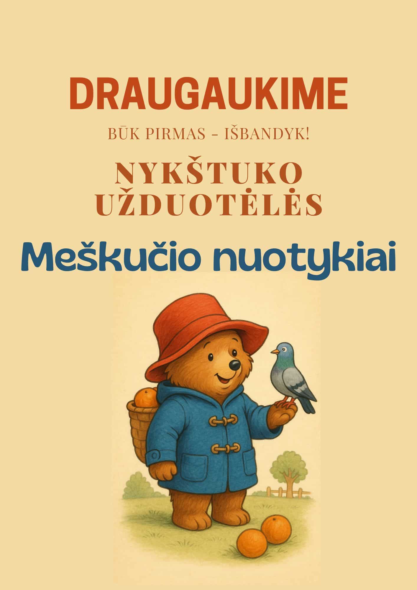 MEŠKUČIO NUOTYKIAI – tai žaisminga spalvinimo knygelė PDF formatu, skirta 3–7 metų vaikams. Joje rasite 10 spalvinimo lapų tikriems meškučio Padingtono gerbėjams. Kiekviename lape – naujas nuotykis, paveikslėlis su aiškiais kontūrais ir švelniomis linijomis, kurios padeda vaikams lengviau spalvinti, lavina rankos judesių tikslumą ir skatina susikaupimą. Spalvindami mažieji ne tik treniruos smulkiąją motoriką, bet ir ugdys kūrybiškumą, vaizduotę bei patirs džiaugsmą kurdami savo spalvingą meškučio pasaulį.