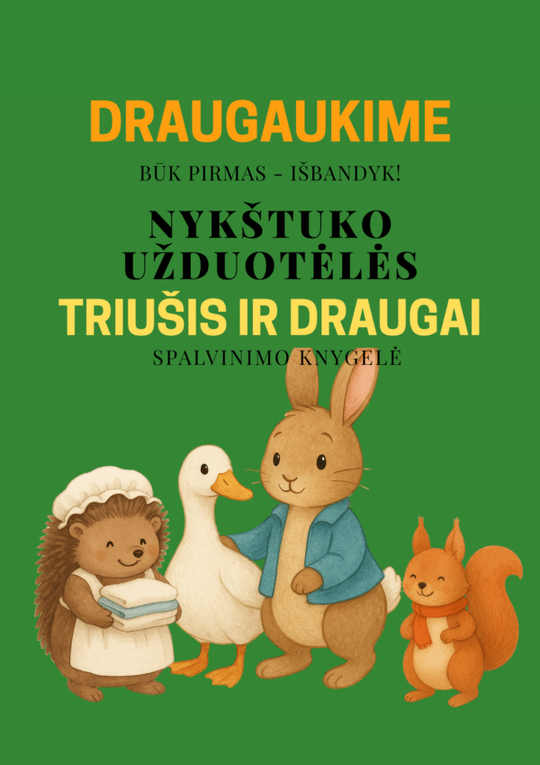 TRIUŠIS PITERIS IR JO DRAUGAI – tai žaisminga spalvinimo knygelė PDF formatu, skirta 3–7 metų vaikams. Knygelėje rasite 10 spalvinimo lapų su populiariu herojumi Triušiuku Piteriu ir jo miško draugais – ežiuku, pelyte, voverėle ir kitais veikėjais. Kiekvienas lapas kupinas švelnių linijų ir aiškių kontūrų, kurie padeda vaikams lengviau spalvinti, lavina rankos judesių tikslumą ir skatina susikaupimą.